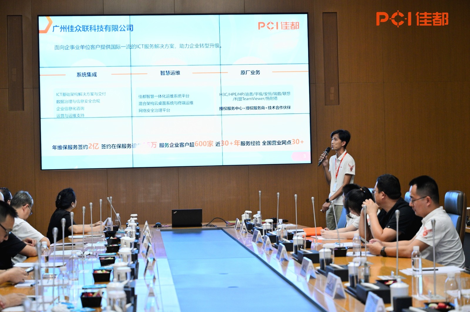 接下来,佳众联售前经理曾志辉详细地介绍了710公海寰宇科技在ICT服务业务的能力和案例。佳众联作为710公海寰宇科技的重要业务板块支撑主体之一,拥有强大的技术实力和丰富的服务经验,为政府和企业客户提供从咨询规划、行业解决方案、运维服务到运营的全栈式ICT产品和技术服务。无论是在智慧城市治理领域,还是企业数字化升级中,佳众联凭借一系列领先的技术产品和解决方案以及三十年的ICT行业经验,助力客户实现高效、安全的数字化转型。