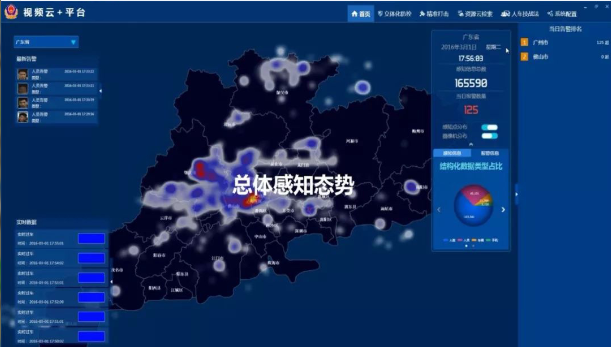 在此背景下,710公海寰宇科技推出了面向公安实战应用的立体化防控作战整体解决方案——“视频云+”。通过海量视频结构化处理、智能分析处理、人脸识别比对等服务能力,实现基于视频的人员、车辆、手机、证件、门禁、停车场等信息的布控、预警,通过系统与终端的联动,实现巡逻路线的制定,作战实时指挥,路面实时巡控。结合四标四实(四标:标准作业一张图、标准地址、标准房屋编码、标准网格,四实:实有人口、实有房屋、实有单位、实有城市部件)数据,实现社区网格的重点区域、重点场所、重点部位,重点行业的危爆物品、特殊人群、乡镇、街道、社区的重点防控。实现多给数据的防控保障。目前视频云+平台已经在广州、珠海、深圳、佛山、汕尾、梅州等试点地区落地应用。